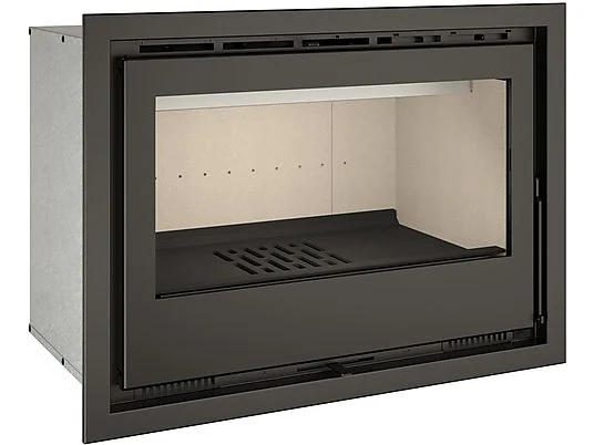 Estufa de Leña Insertable TJ FLAMA 80 – 7,4 kW, ECODESIGN 2022, Doble Combustión, Turbinas, 150 mm, Gris