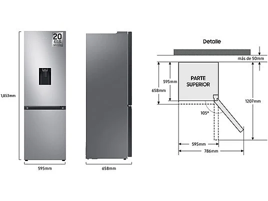 El Samsung RB34C632DSA/EF es un frigorífico combi de alta eficiencia y conectividad, diseñado con tecnología avanzada para optimizar el almacenamiento, la conservación de alimentos y el consumo energético en el hogar.