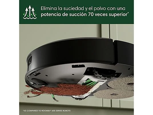 - Succión: El robot dispone de una succión 70 veces superior a la de la Serie 600, junto con un cepillo de goma multisuperficie y un cepillo para esquinas y bordes, acabando con todo tipo de suciedad.