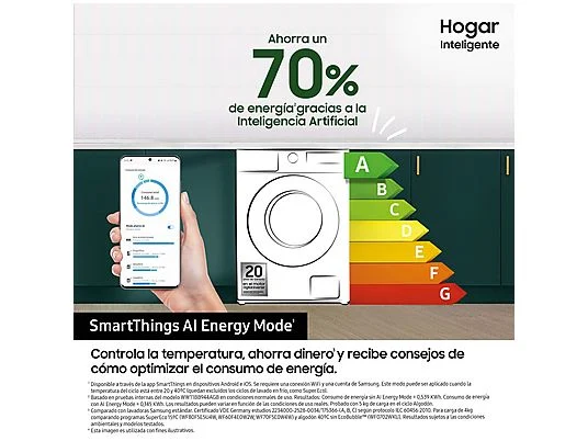 - Ahorro de Energía: Al usar el modo SmartThings AI Energy Mode, el ahorro energético puede alcanzar hasta el 70%.