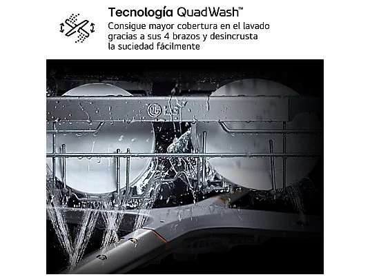 - Tecnología QuadWash™: Utiliza 4 brazos rociadores en lugar de los 2 convencionales. Estos brazos giran y oscilan en varias direcciones, proporcionando una mayor cobertura de lavado y eliminando la suciedad incrustada con facilidad.