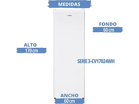 SAUBER SERIE 3-CV17024WH | Congelador Vertical | 242 L | 170 cm | Clase E | Blanco