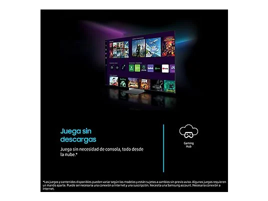 - Gaming Hub: Plataforma que permite jugar sin necesidad de consola, con acceso a juegos favoritos en la nube. Compatible con FreeSync Premium Pro para un gaming más fluido.